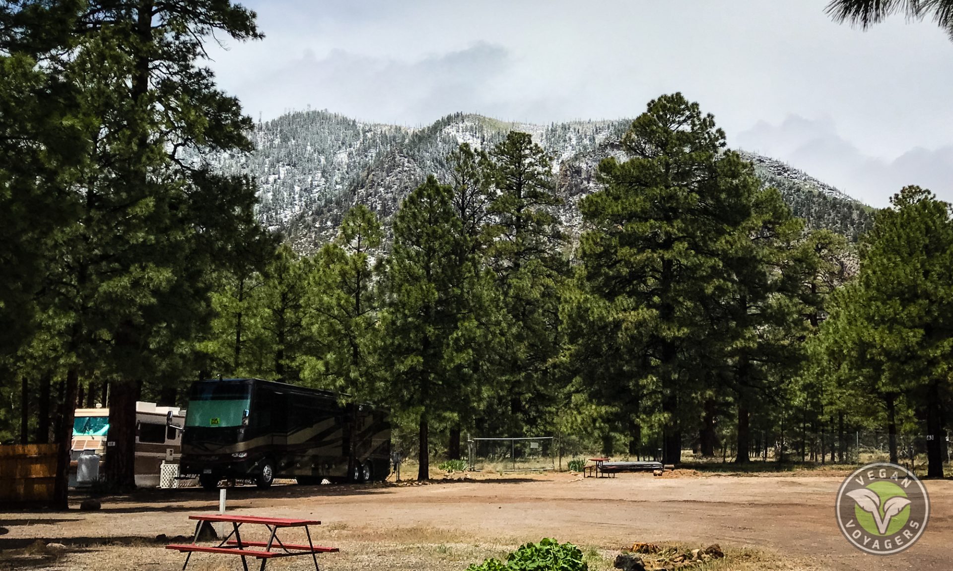 As we drove south-east from Las Vegas and neared the Flagstaff area, it became immediately apparent that we were going to be surrounded by some of the most gorgeous views we’ve had since we were at Lake Pleasant a few months back.  Upon arriving at the front office and getting ready to check in, we immediately noticed how cool, crisp, and refreshing the air was and that the entire park was surrounded by pine trees.  It felt good to be cold for a change!