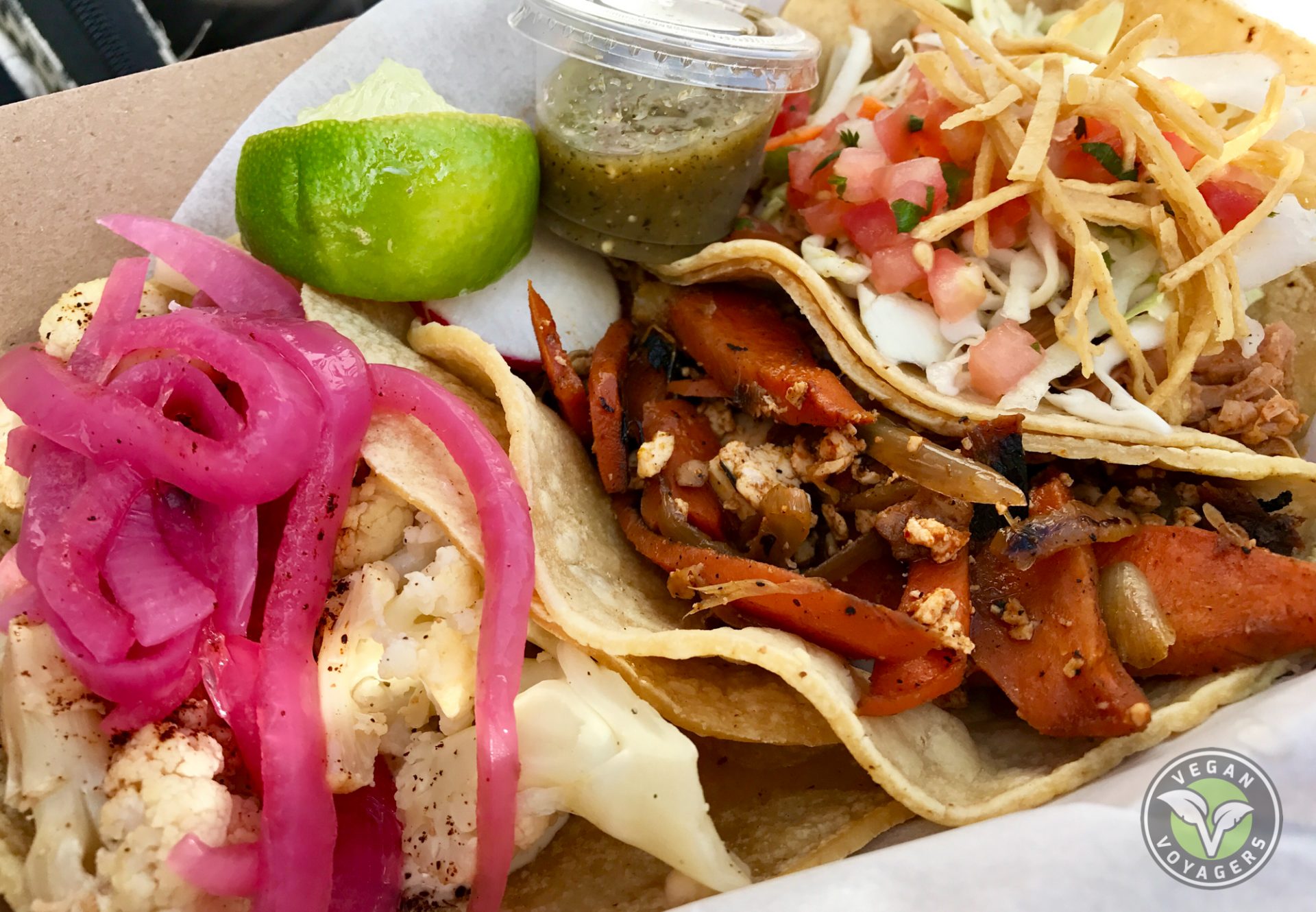 Trejo’s Tacos – Seared Carrot & Soyrizo Taco, Roasted Cauliflower Taco, Chips & Salsa: Aaron has been dying to get his hands on Trejo’s Tacos ever since we decided we were going to be coming to LA. Unfortunately, we were not impressed at all with the tacos we got. Neither of them really had any flavor to them and left us disappointed. The lone saving grace here is that the salsa was incredible. Aaron doesn’t like tomatoes and by proxy, doesn’t like salsa, but devoured this. Hayden’s cousin Rachel, a (non-vegan) chef, was with us. She tried the Jackfruit Tacos, which she thought were amazing. She had never had jackfruit before and said that it would have fooled her into thinking it was chicken. So clearly we ordered the wrong thing! Damn!