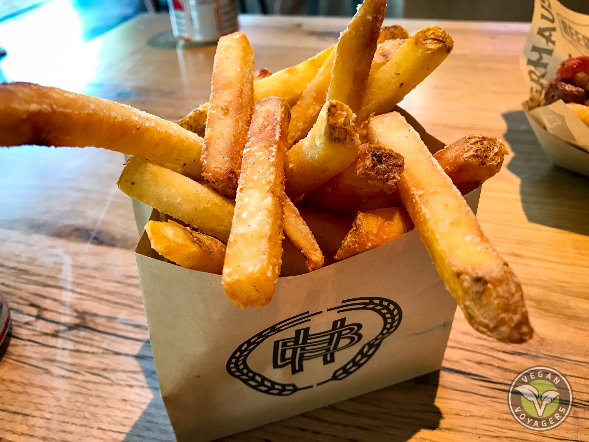 Hayden stumbled upon Beerhaus while looking for new places to check out on HappyCow. This restaurant is tucked behind New York New York in a place called “The Park.” Stepping into the area, we immediately got more of a Portland or Austin vibe and definitely felt like we were miles away from the strip.