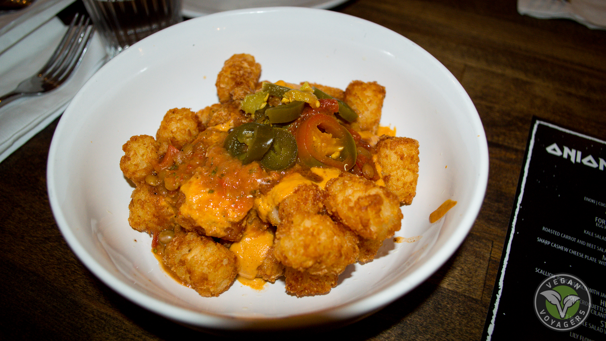 Emperor Palpatots- Tater tots with cashew cheese, lentil chili, salsa, pickled jalapenos. First and foremost, if you do not like spicy things, order this without the jalapenos because they are HOT! The lentil chili and salsa, when combined, give it a really good depth of flavor. The cashew cheese is absolutely delicious, we just wished there was a bit more cheese for coverage.