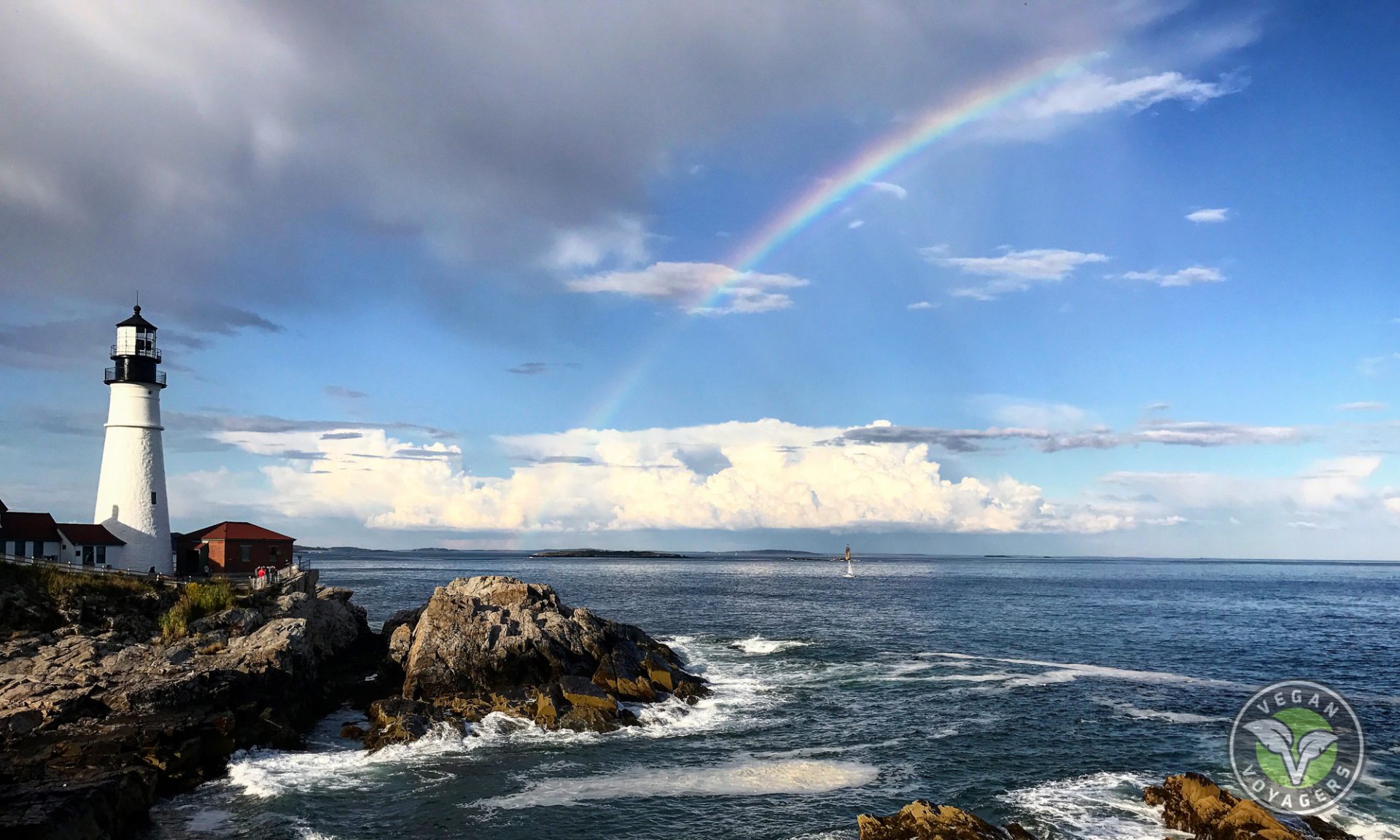 After saying goodbye to Taryn, we decided to head out to the Portland Head Light. We had visited there previously but there were storms in the area and we weren’t able to get great photos. Well this time, we had about a 10-minute window where we had the perfect lighting and even had a rainbow in the background. We snapped up several photos while we could and then the skies turned gray and all of our lighting went away so we headed downtown to try some beer.