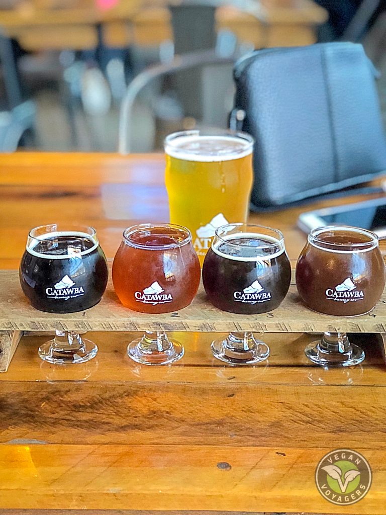 While Asheville was high on our radar for the crazy amount of vegan food that is available, we didn’t realize just how many different breweries were in the area too. We checked out quite a few of them on the “Ale Trail” and even sat down with the founders of one of them for an in-depth interview about the history of the brewery. That being said, let’s check out the breweries!