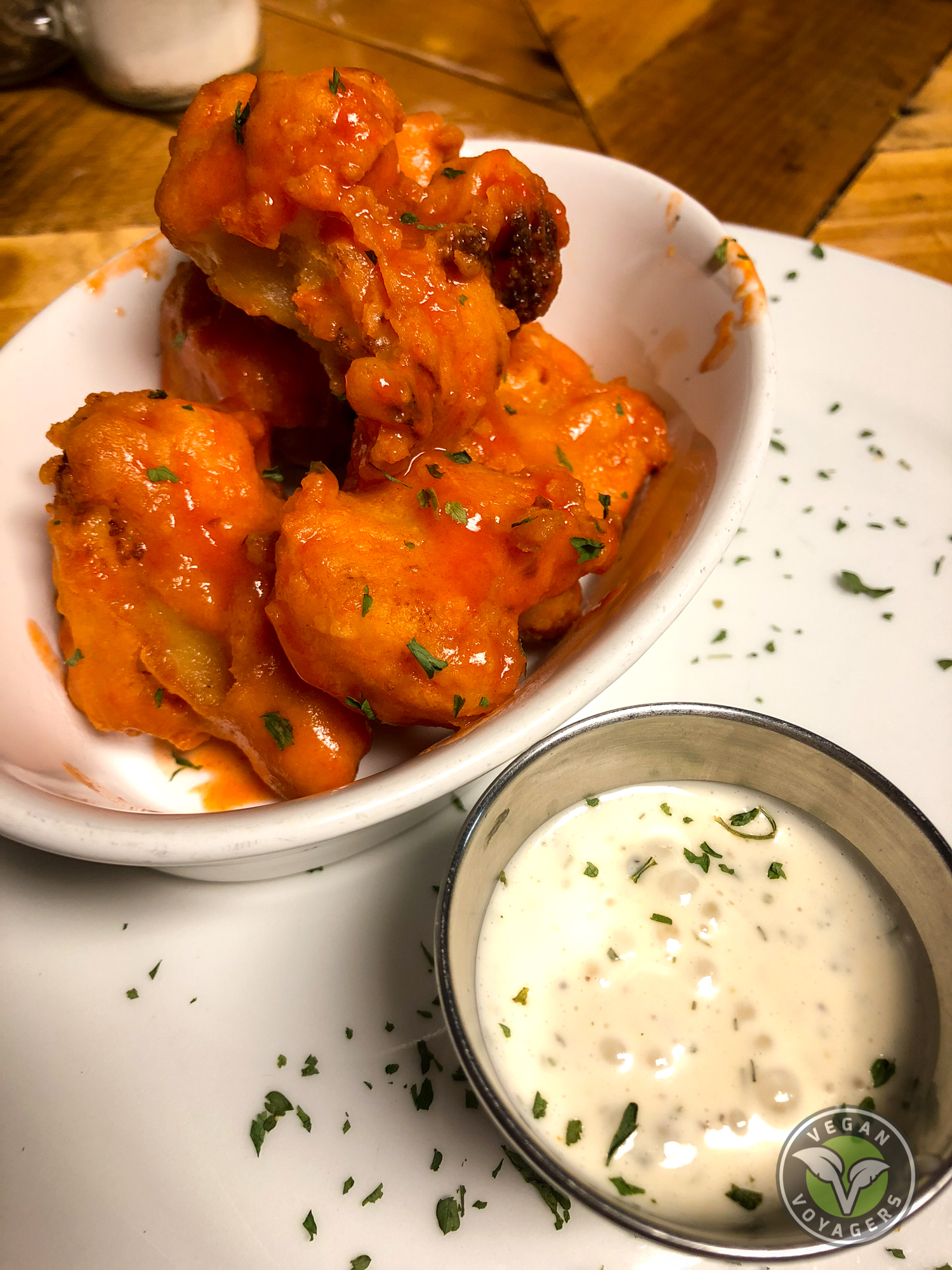 Buffalo Cauliflower Bites- cauliflower florets battered and fried, then coated in spicy buffalo sauce. These might be the best buffalo cauliflower we’ve ever had! And that’s saying a lot since we order these quite often. The batter they were fried in was fantastic, the buffalo sauce wasn’t too spicy and packed just the right amount of punch, and the cauliflower was perfectly cooked and a bit crunchy on the inside. Definitely order these, or order two, because they are perfection!