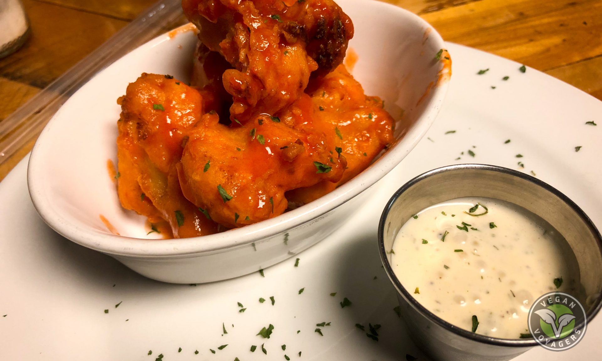 We actually went to Paisley Vegan Kitchen in Cocoa Beach, Florida twice because it was SO amazing! If you’ve been following along with us on our food adventures, you’ll know by now that we are obsessed with anything that has buffalo sauce on it. So, it’s no shocker that we ordered buffalo cauliflower and buffalo chicken sandwiches. The entire menu isn’t very extensive, but what they do have looks fabulous and we wish we would have branched out a bit from our staples to try some new things.
