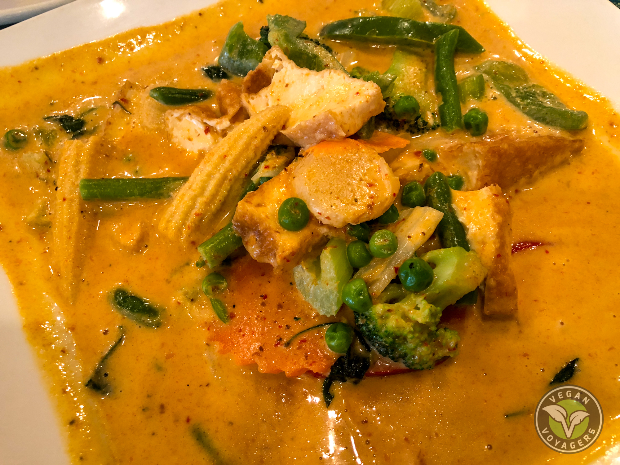 We ate at Thai Thani in Orlando Florida three times (twice in the restaurant and once with takeout) because it was so good! When you walk inside, there are lots of very intricate ornate decorations, which gives the restaurant a really authentic feel- or a touristy feel, which is probably more accurate since it’s right near all the theme parks. We must have come both times at weird hours because there was no one really inside dining, but it looks like it gets packed at peak hours. This restaurant is mostly meat based on the menu, but many dishes can be made vegan with a tofu substitute. Just let the server know that you’re vegan, they knew what that means, and they will let you know if there is hidden fish sauce or egg in the dish you’re ordering.