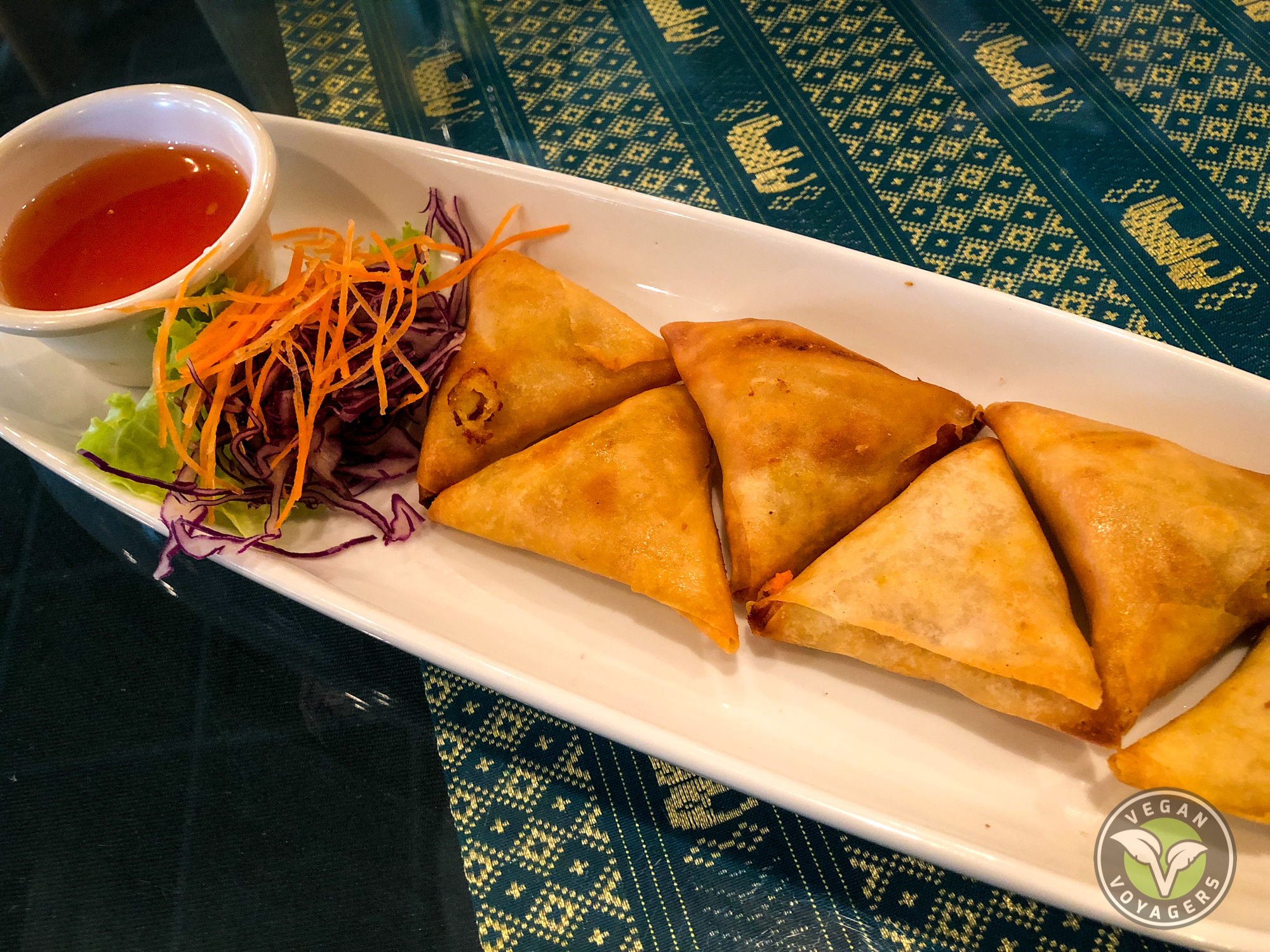 Vegetable Samosas- we were a little surprised these were even on the menu since traditionally samosas are Indian… Maybe we’re wrong, but either way, they were really good, crispy on the outside and soft in the middle, just as they should be. The dipping sauce that came with it really helped to round out the dish.